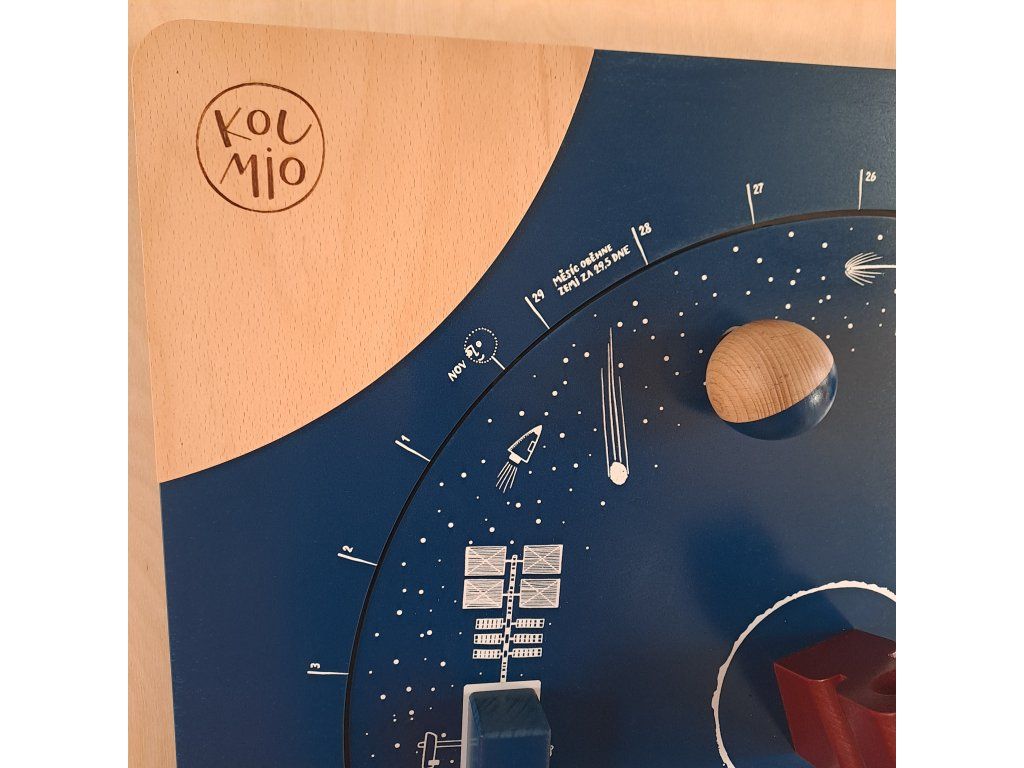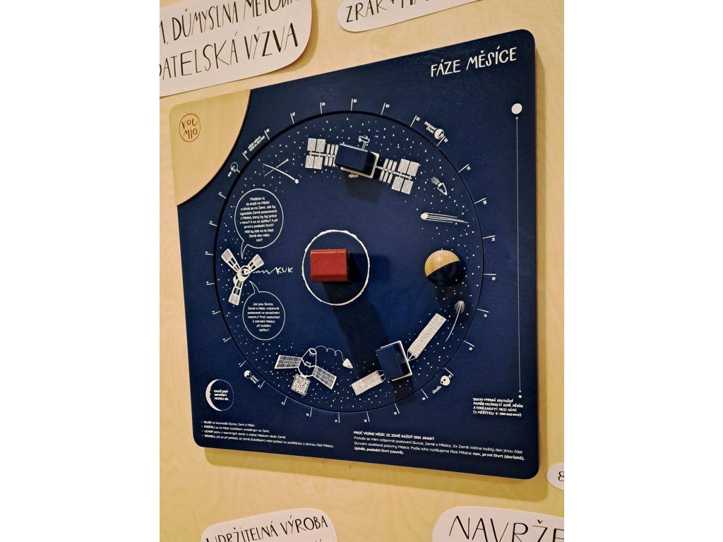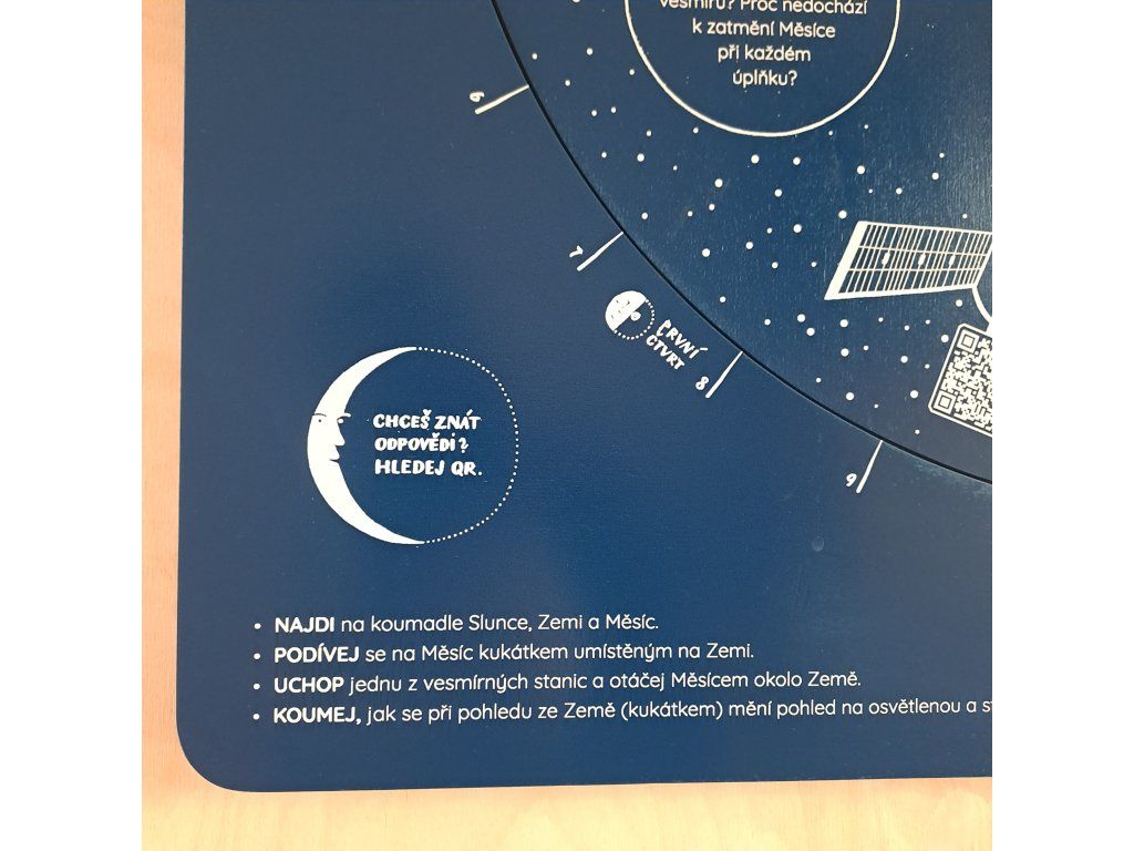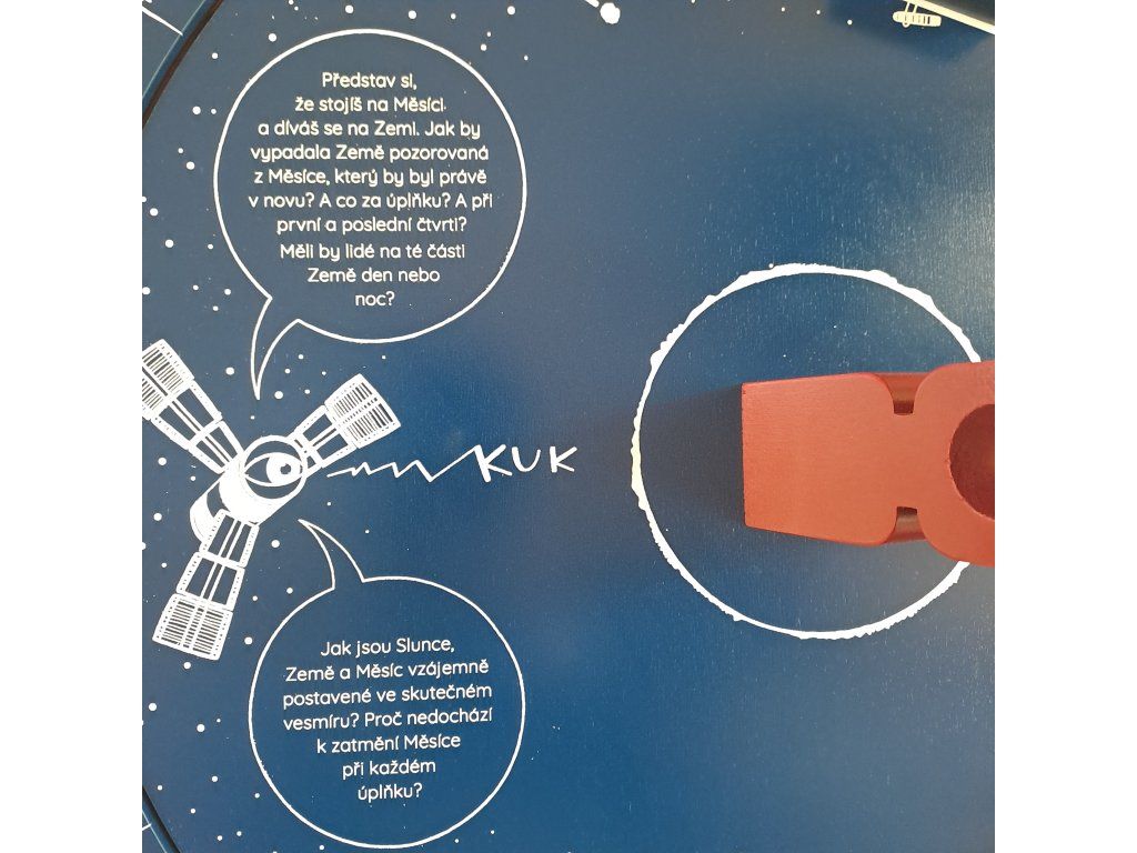 Odolný interaktivní dřevěný model s mechanickým ovládáním pomáhá dětem pochopit pohyby vesmírných těles hravou formou. Součástí je integrovaná badatelská výzva.